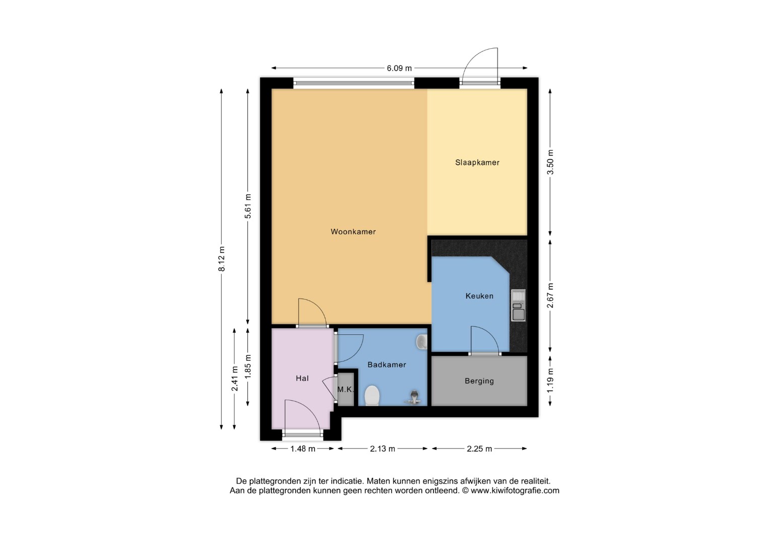 Vanuit de centrale hal heeft u toegang tot het appartement. U komt binnen in een ruime hal met toegang tot de woon-/slaapkamer en de badkamer.
