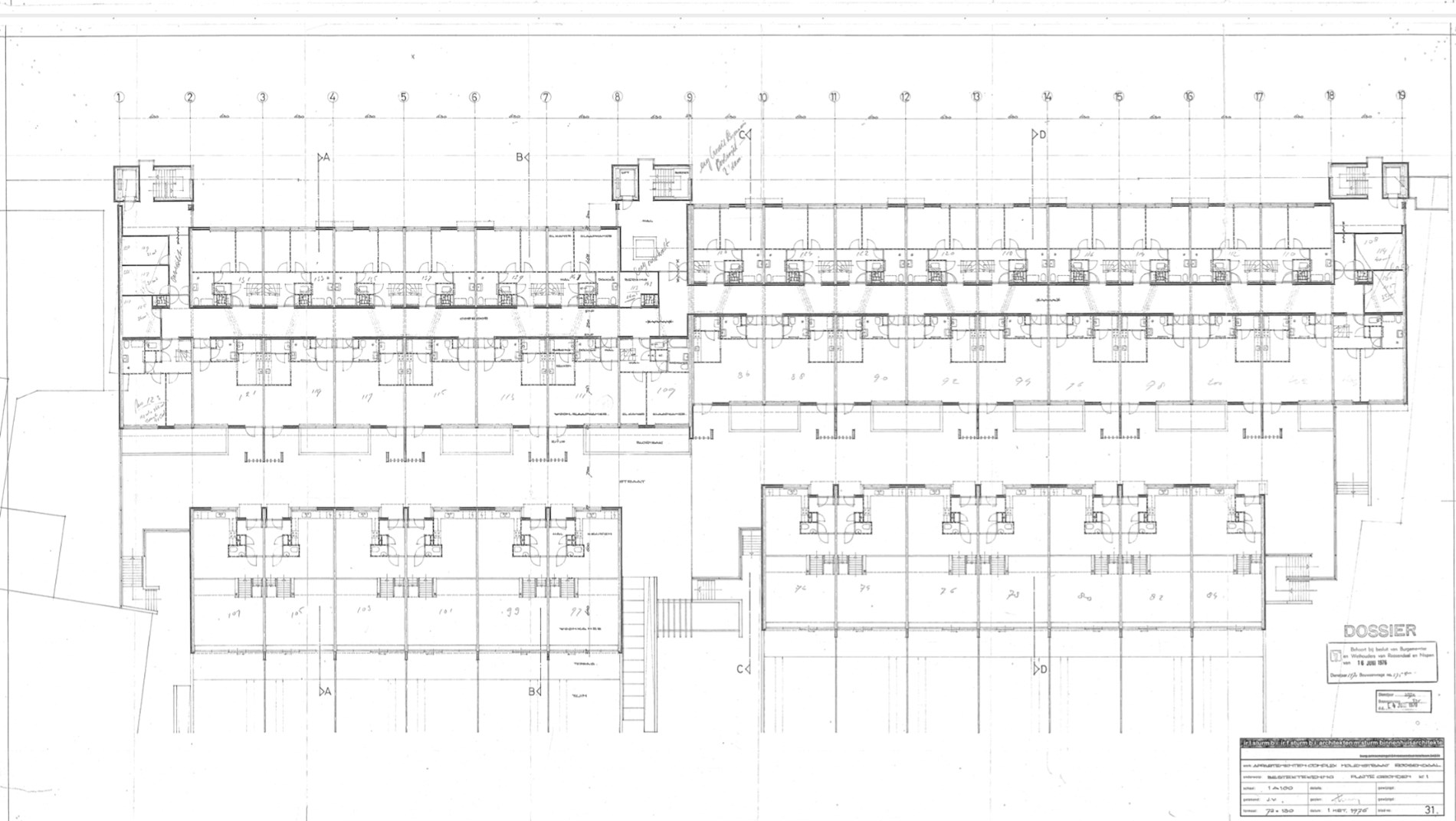 De centrale ingang van het complex bevindt zich aan de Kloosterstaat. Hier heeft u toegang tot de brievenbussen van de appartementen en de intercom. Hierna komt men in het portaal waar men toegang heeft tot de lift, het trappenhuis en de ondergrondse garage. In deze ondergrondse garage bevindt zich ook de berging.