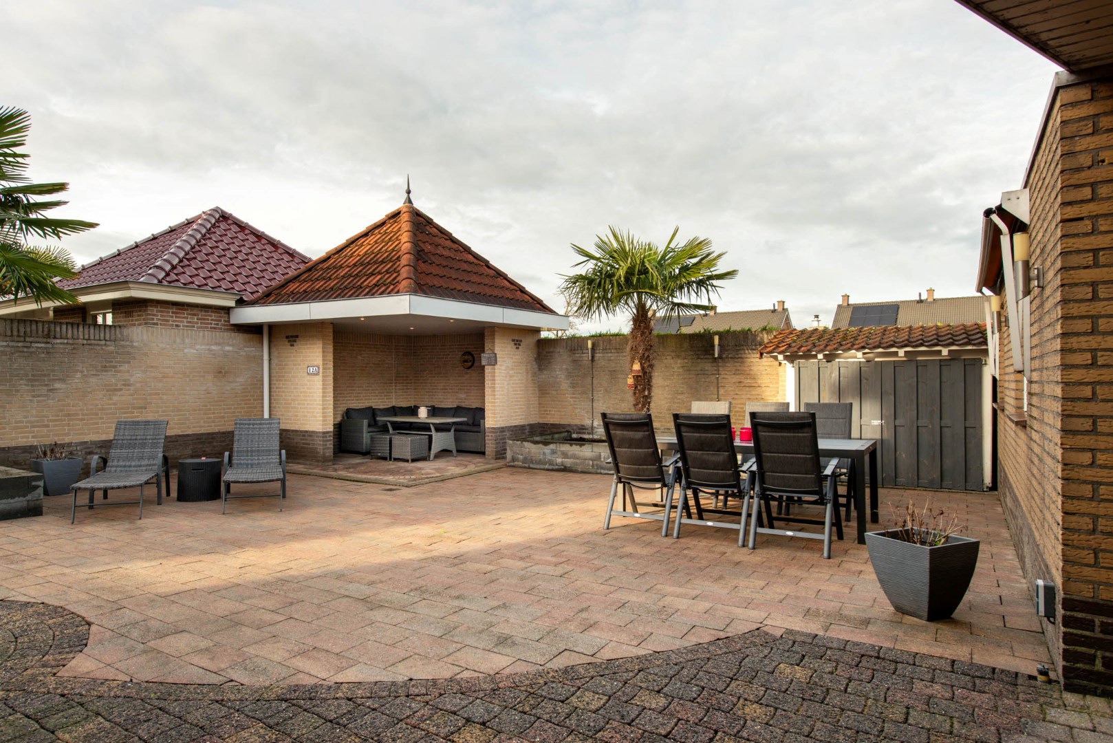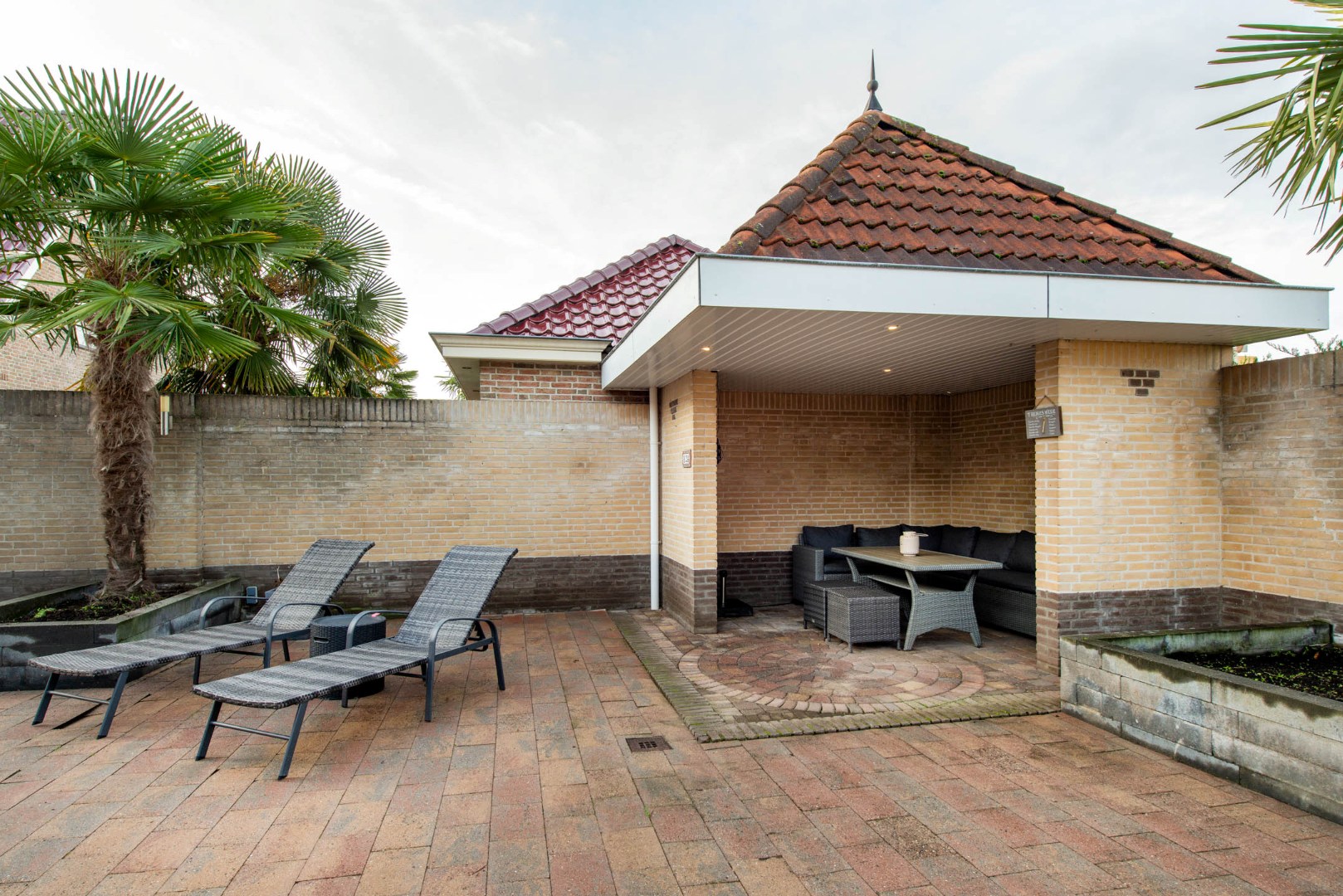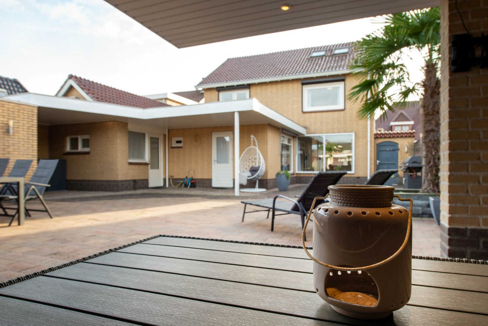 Rondom de woning ligt een fraai aangelegde tuin waar privacy en rust centraal staan. De aangebouwde overkapping van circa 24 m² vormt een heerlijke plek om vrijwel het hele jaar door buiten te zitten – voor lange zomeravonden of een rustig moment met een boek. De tuin is onderhoudsvriendelijk ingericht en voorzien van een beregeningssysteem.