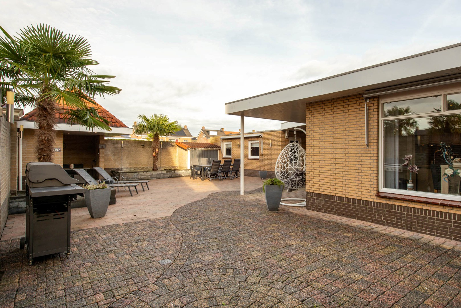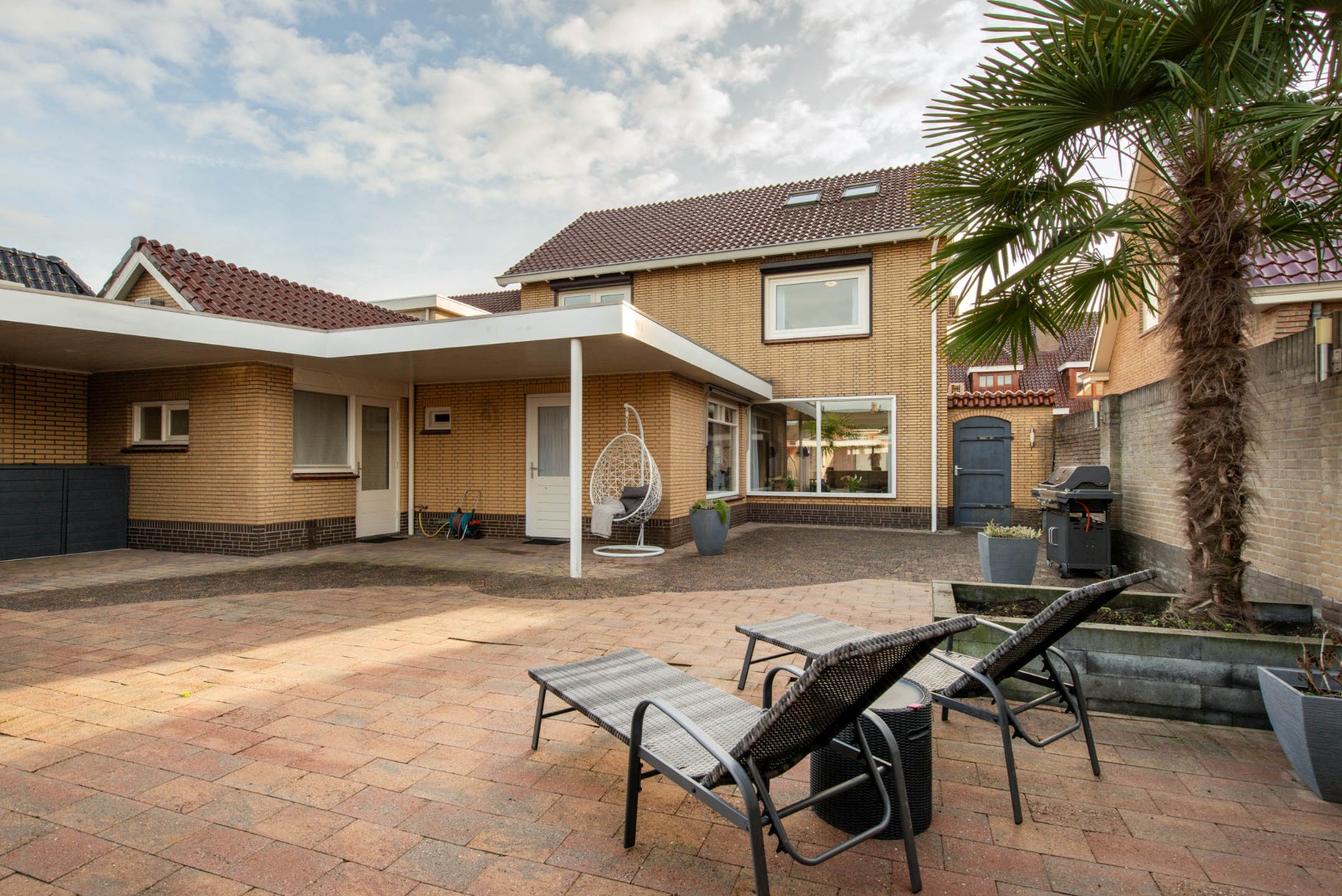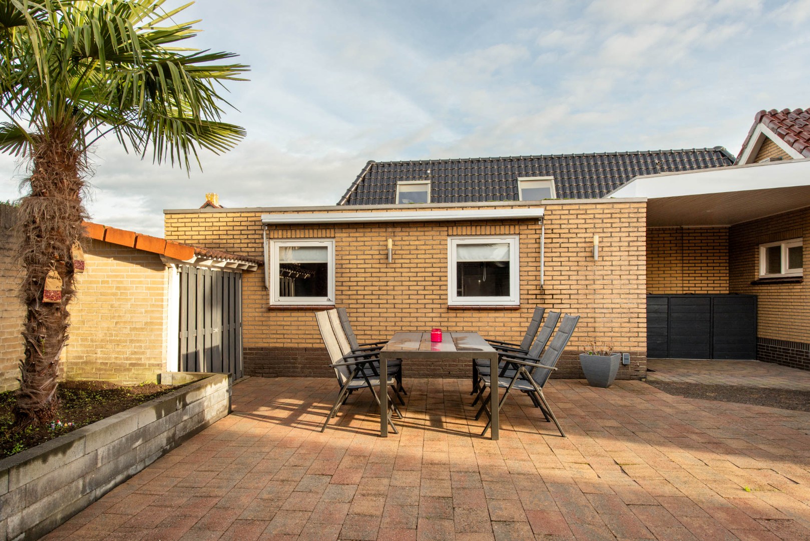 Rondom de woning ligt een fraai aangelegde tuin waar privacy en rust centraal staan. De aangebouwde overkapping van circa 24 m² vormt een heerlijke plek om vrijwel het hele jaar door buiten te zitten – voor lange zomeravonden of een rustig moment met een boek. De tuin is onderhoudsvriendelijk ingericht en voorzien van een beregeningssysteem.