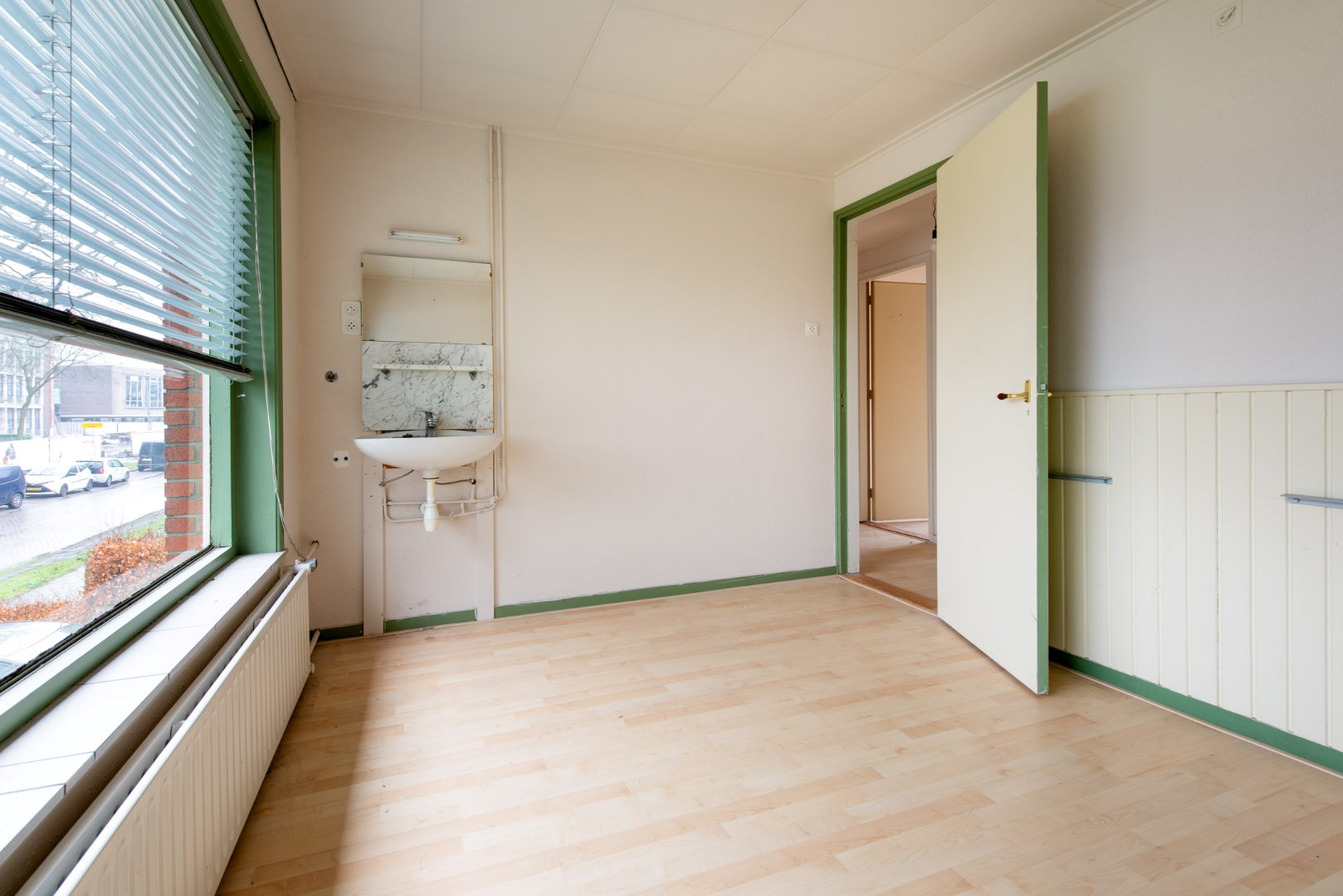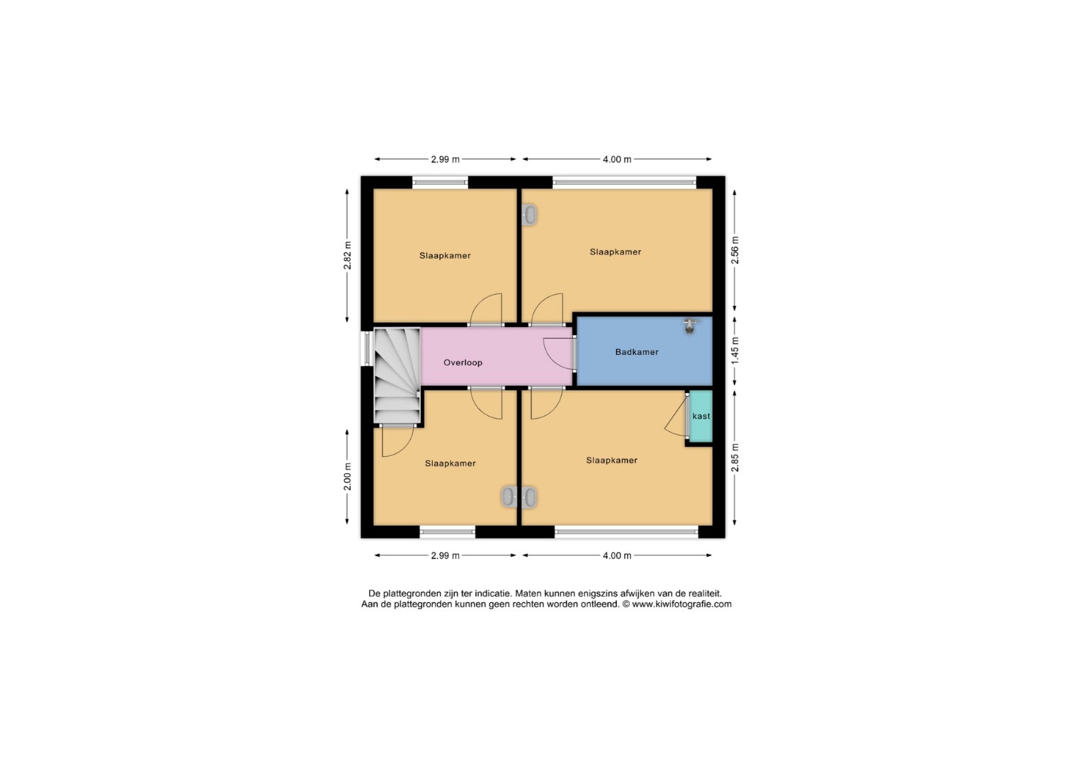 Hier vindt u 3 ruime slaapkamers en een kleinere slaapkamer/kantoor waar ook de trap naar de tweede verdieping is. Alle slaapkamers zijn voorzien van een laminaatvloer. Twee slaapkamers zijn voorzien van een wastafel, net zoals het kantoortje.