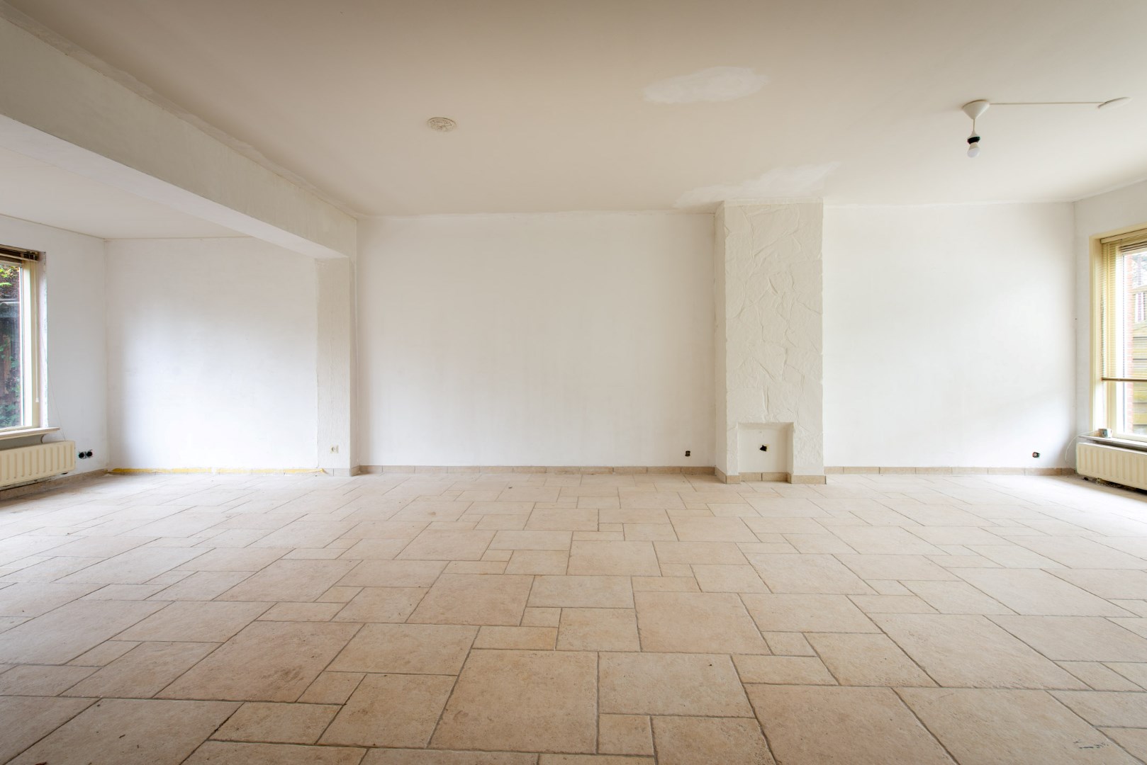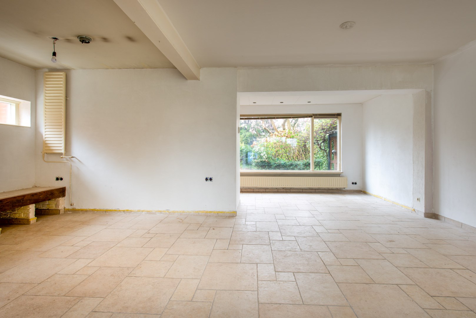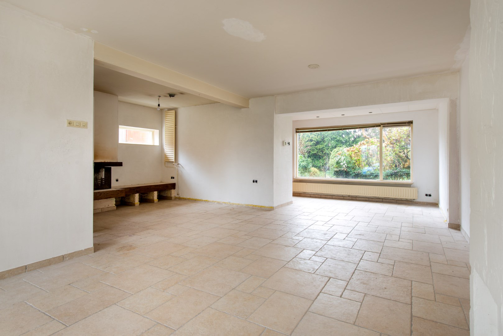 De ruime doorzon woonkamer is voorzien van dubbel glas, toegang tot de kelder en een open haard.