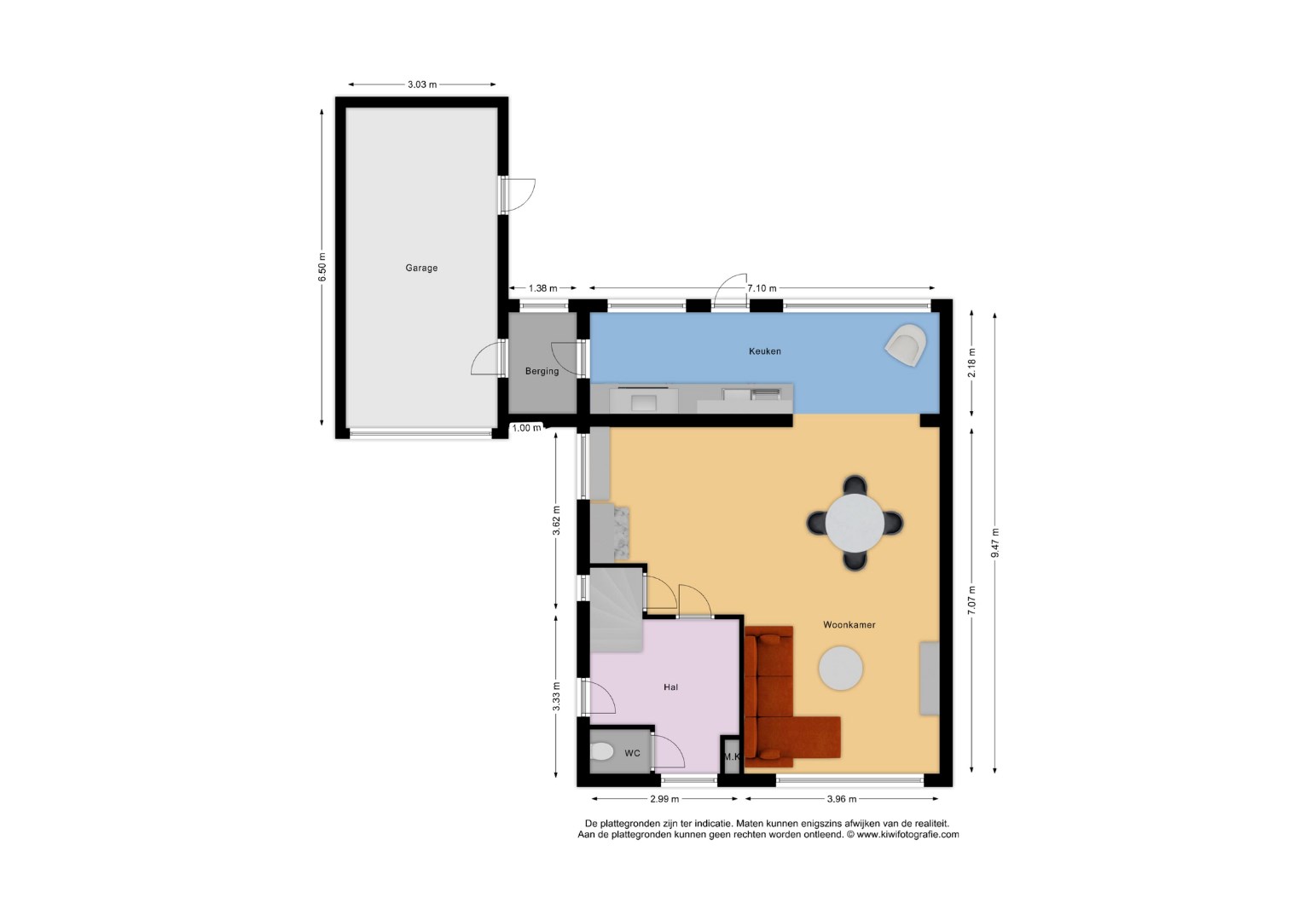 Bij binnenkomst treft u een ruime hal waarin de toegang tot het toilet, meterkast en woonkamer zijn. Hal en woonkamer zijn beide voorzien van een mooie plavuizen vloer. Ook de trap naar de eerste verdieping vind u in deze ruime hal.