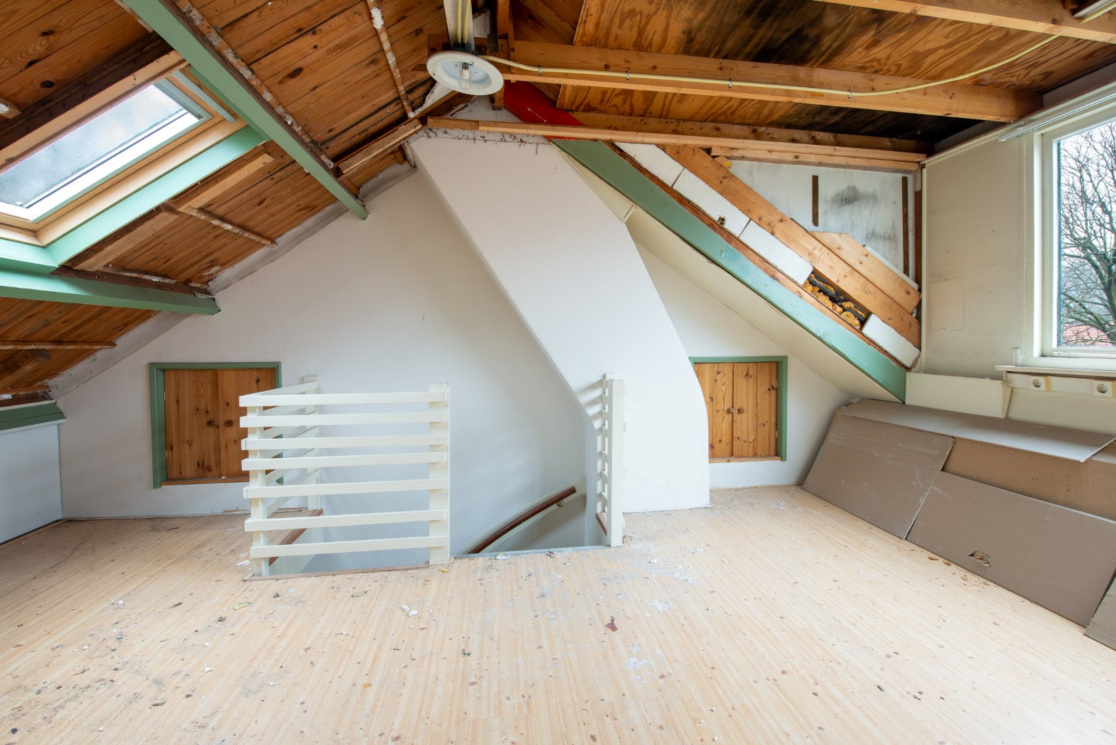 De zolder is verdeeld in een voorzolder en een vijfde slaapkamer. Over de volle breedte van de zolder is er een dakkapel waardoor er een zeer grote ruimte ontstaan is. De zolder heeft een laminaatvloer en is deels voorzien van dakisolatie.