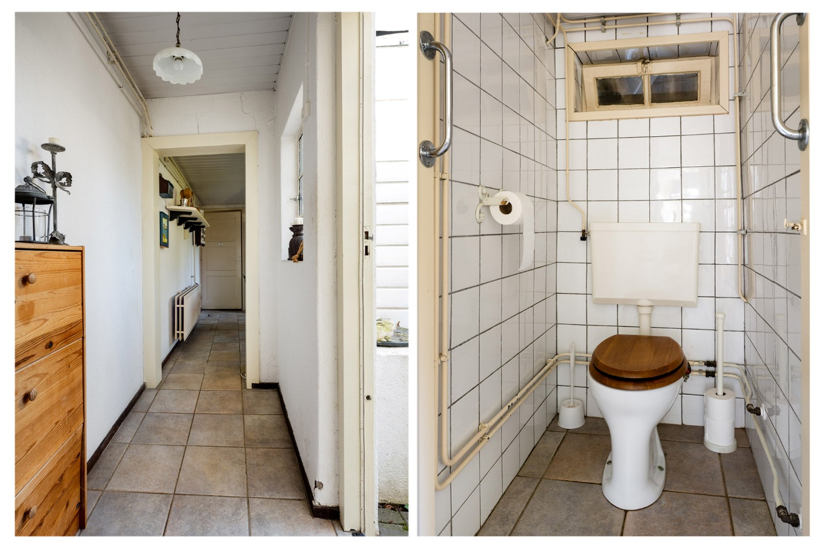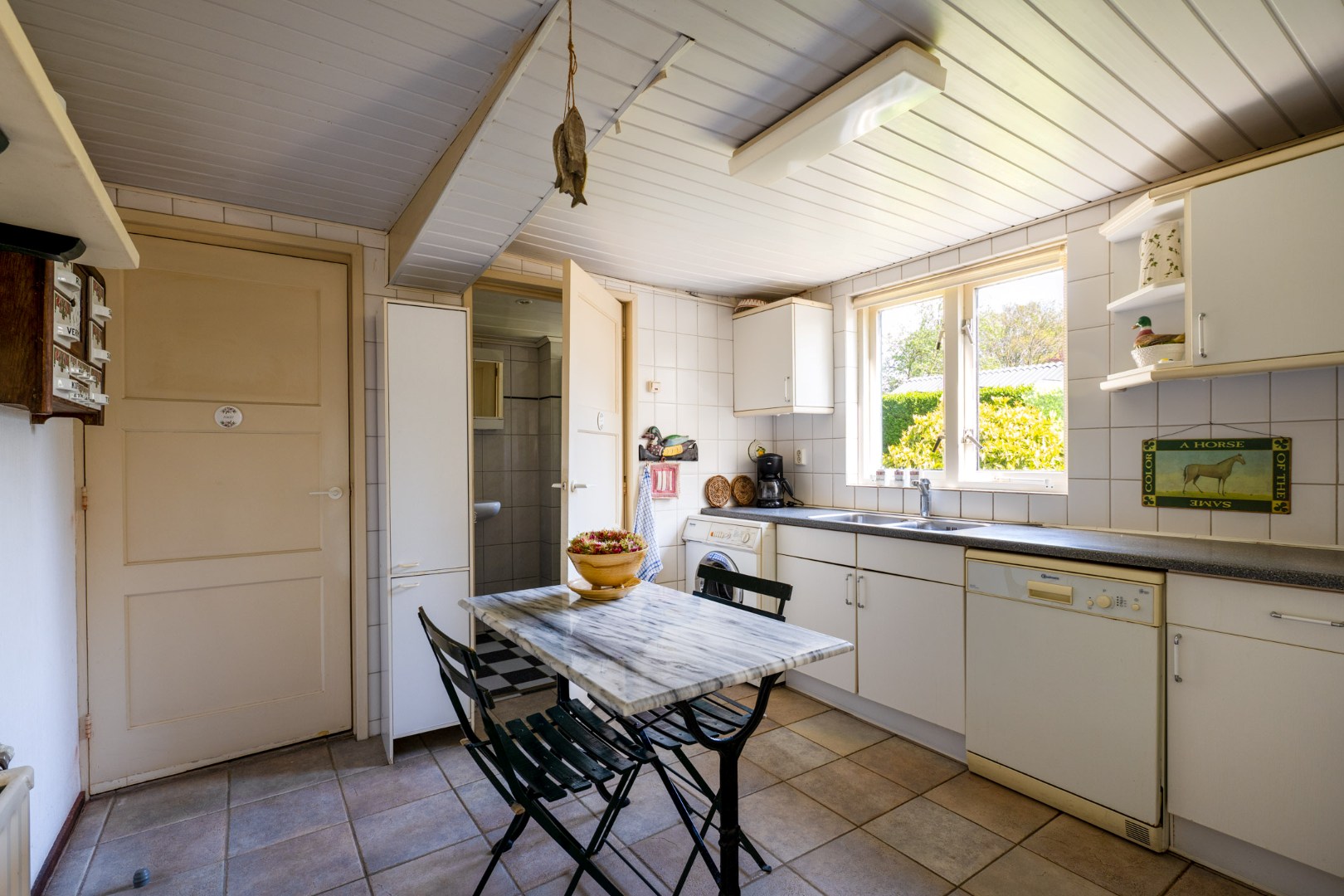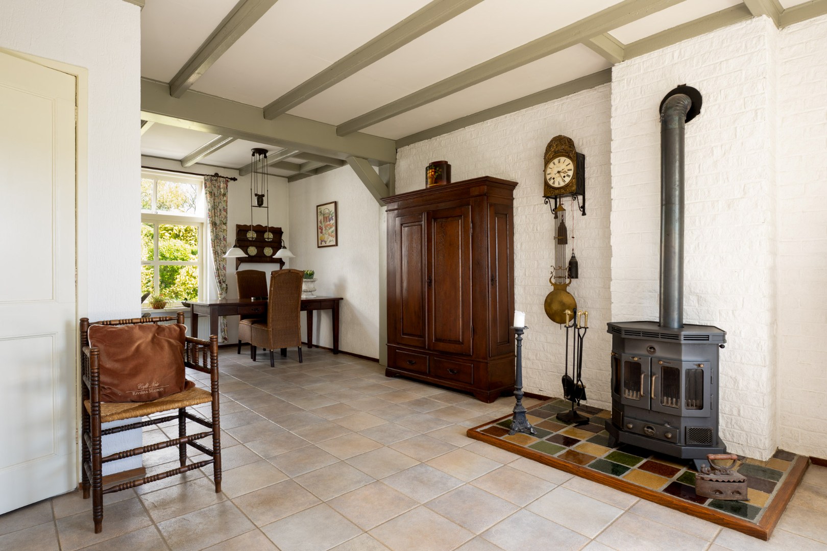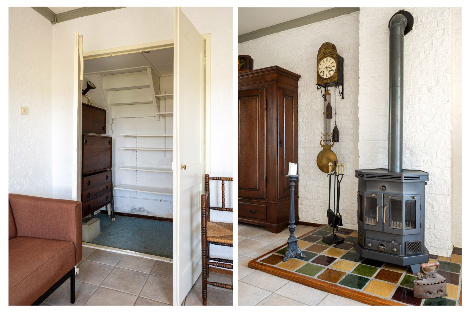 De begane grond beschikt over een lichte woonkamer met een prettige indeling en een prachtig vrij uitzicht over de polder. Hier ervaar je dagelijks het echte buitenlevengevoel. In de woonkamer bevinden zich een authentieke houtkachel, die zorgt voor warmte en sfeer in de winter, én een oude bedstee, een bijzonder en sfeervol historisch element dat de woning extra karakter geeft. De keuken is gedateerd en biedt daarmee een uitstekende basis om volledig naar eigen smaak te moderniseren.