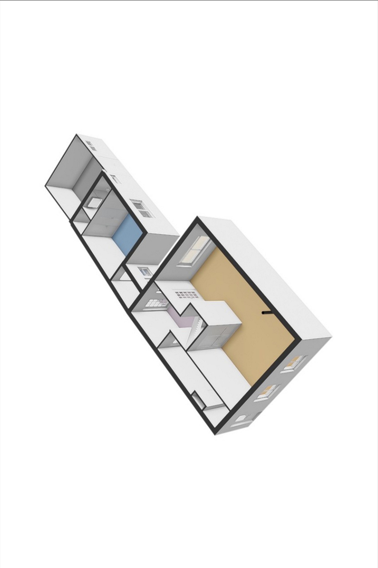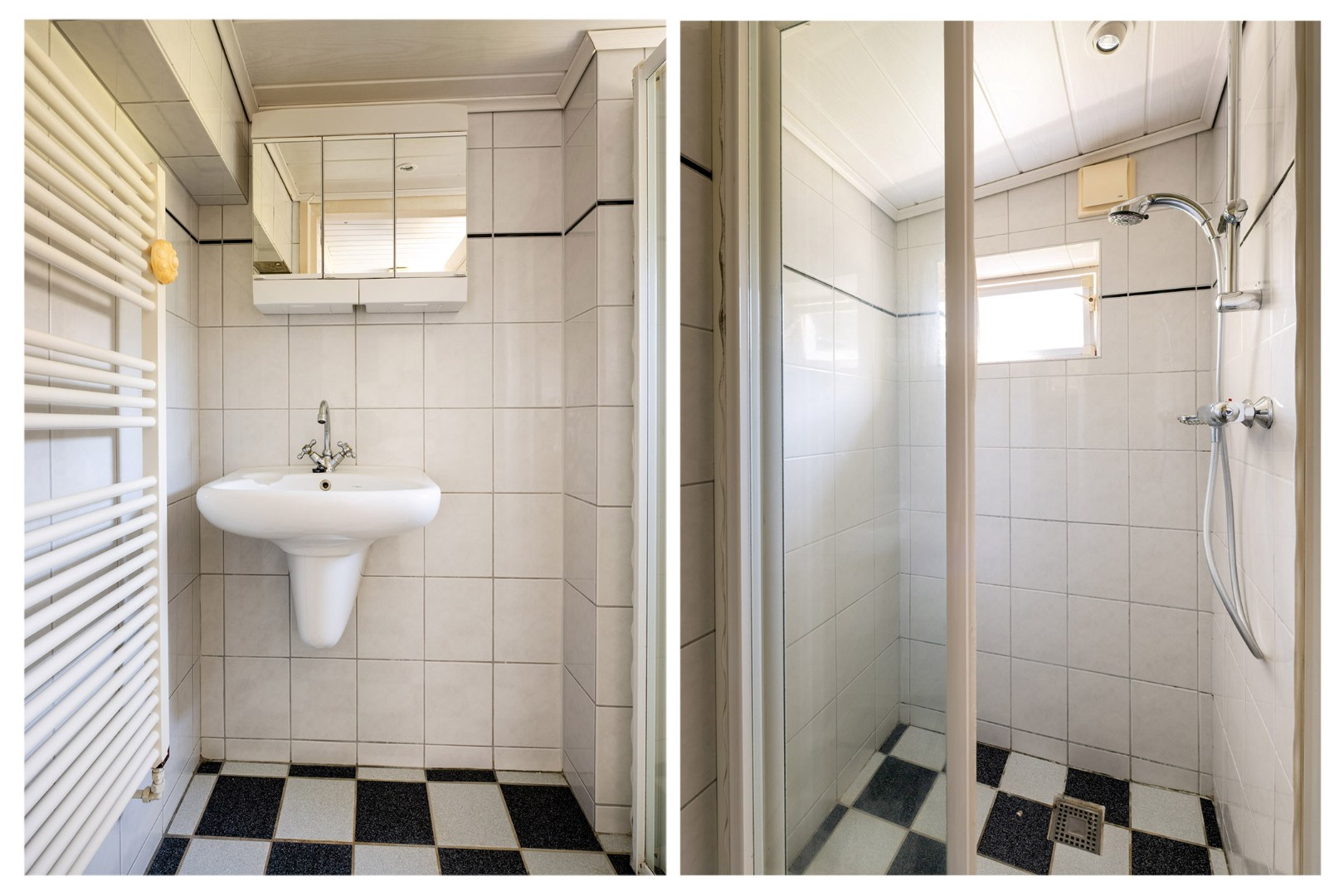 Op de begane grond bevindt zich tevens een doucheruimte en een apart toilet, wat zorgt voor extra comfort en gebruiksgemak.