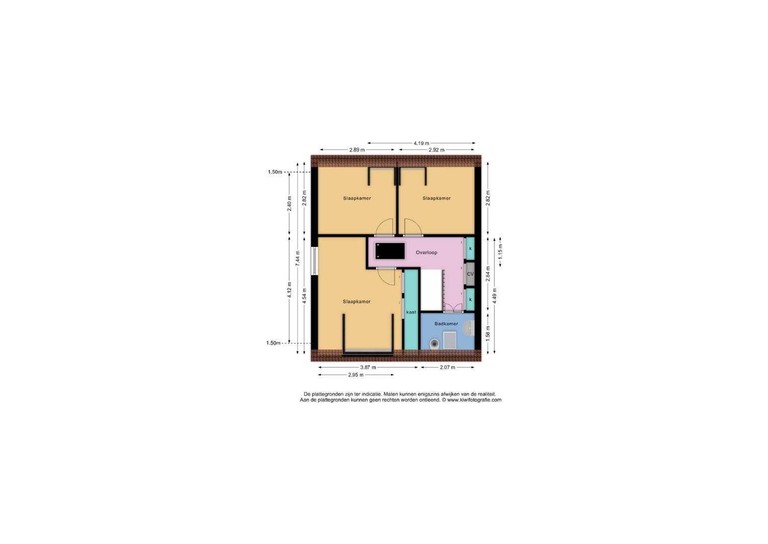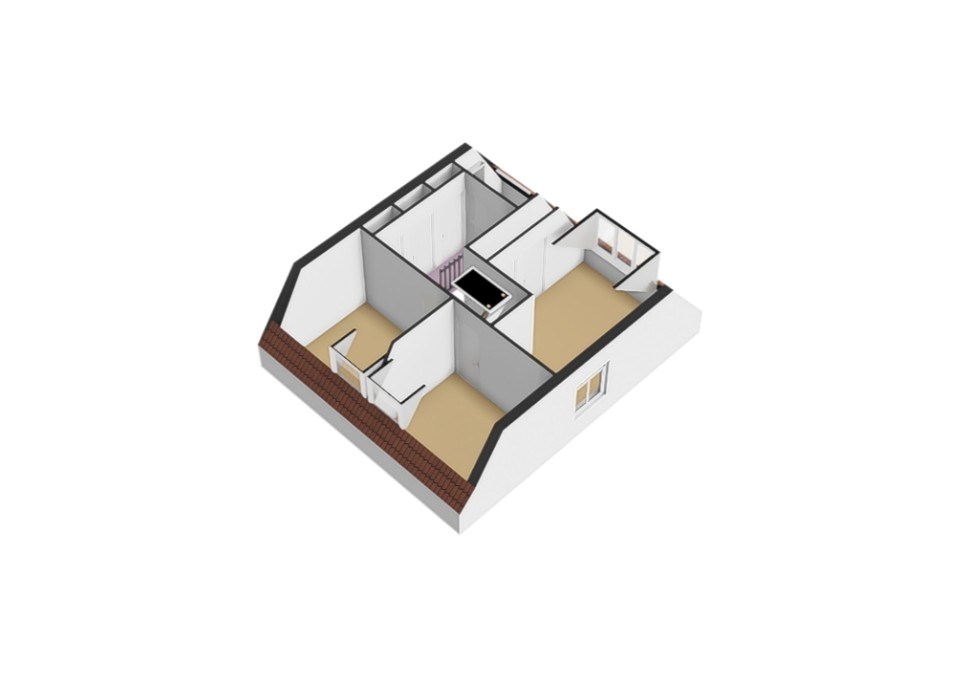 Op de verdieping is een ruime overloop (hal) die toegang biedt tot de vertrekken. Hier bevinden zich drie slaapkamers, bestaande uit één ruime hoofdslaapkamer en twee royale kinderkamers. Daarnaast is er een toiletruimte aanwezig. De kenmerkende Franse kap zorgt voor een speelse indeling en extra ruimtebeleving.