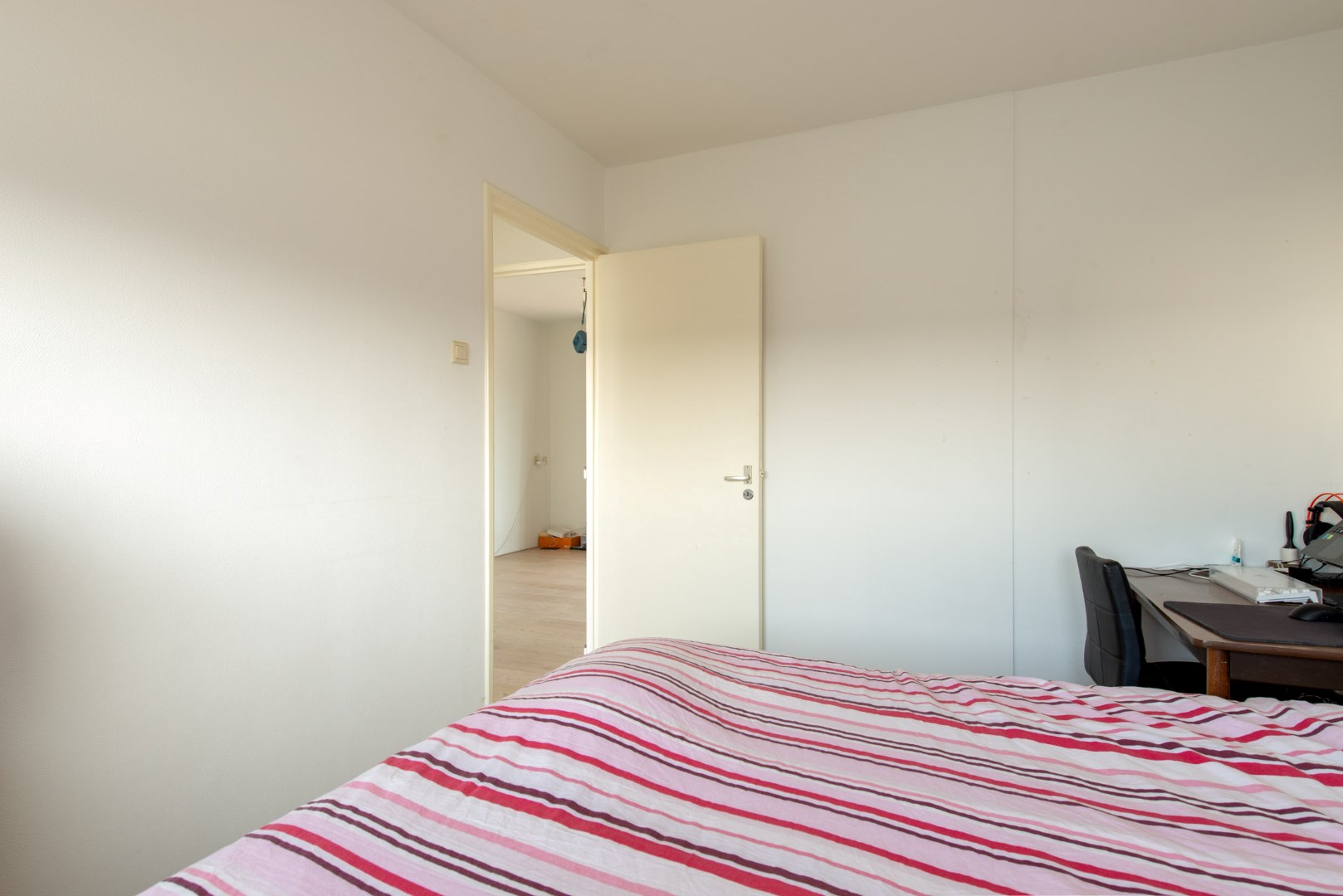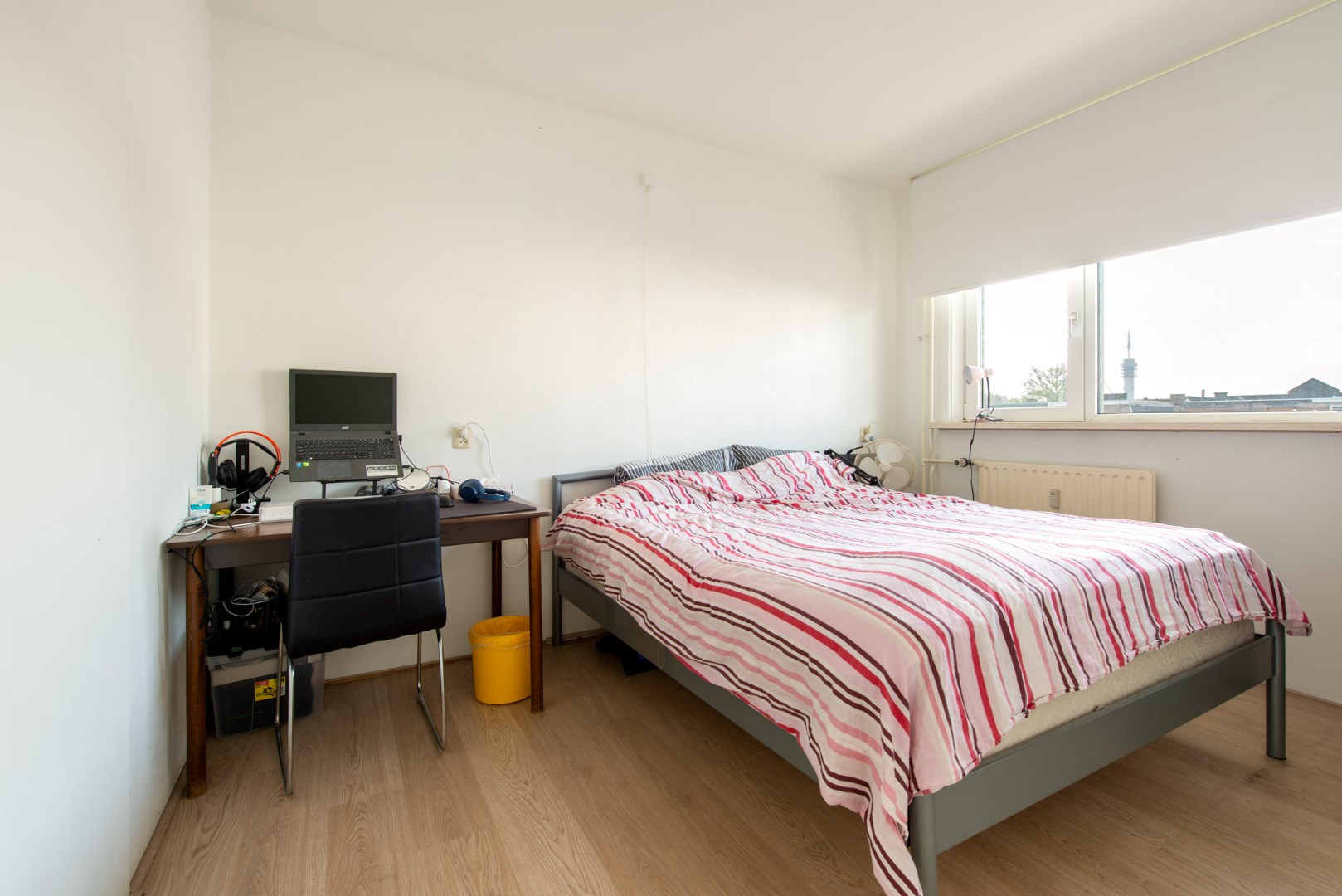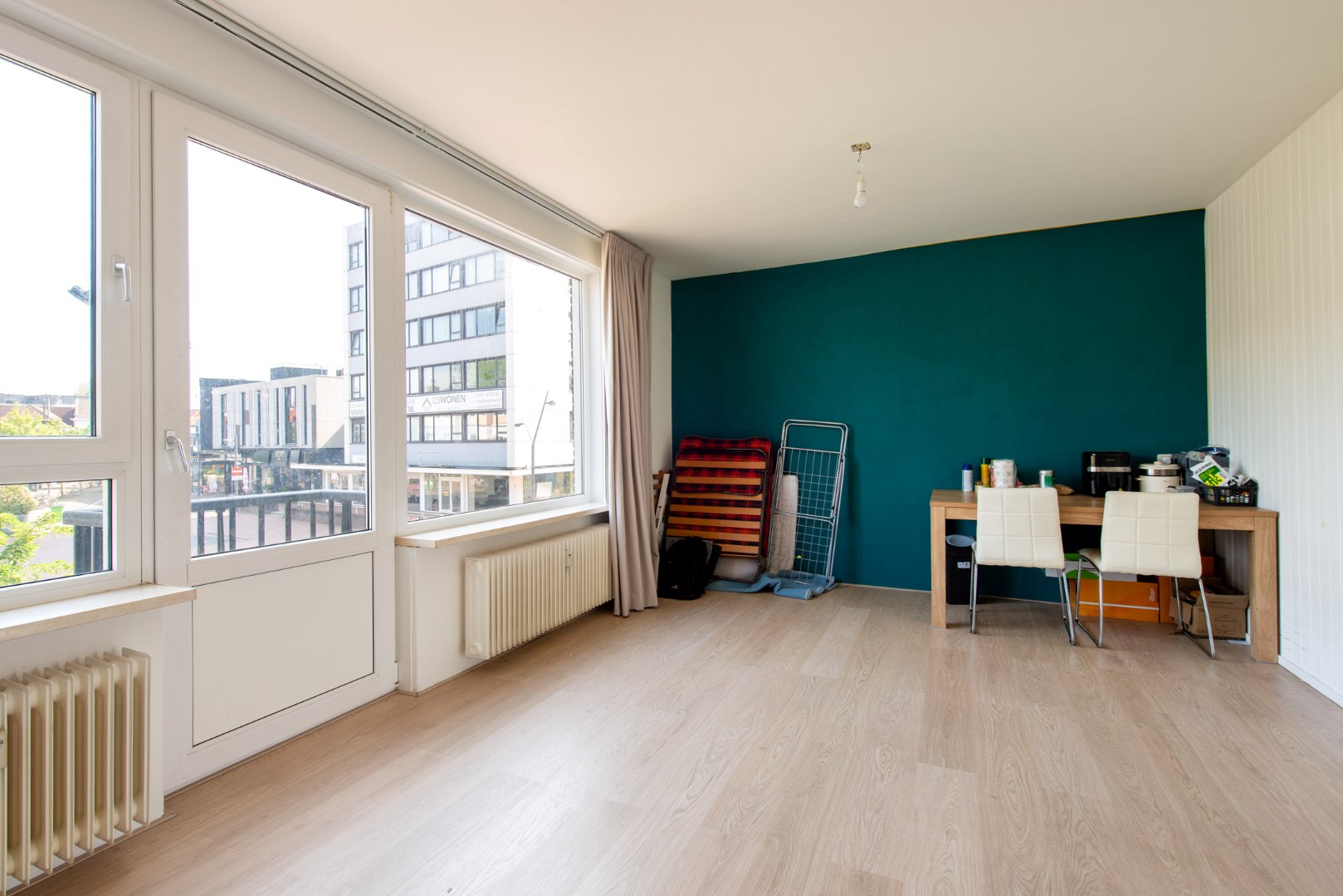 De woonkamer is voorzien van prachtige grote raampartijen hierdoor is het appartement licht en vrolijk. Door de warme stucwanden en laminaat vloer is het een warm geheel. Vanuit deze leuke woonkamer, en vanaf het frans balkon, heeft u uitzicht over de stad. Aan de voorzijde is dit appartement voorzien van geluidsisolerend glas zodat u de stadsgeluiden indien gewenst kunt buiten sluiten.