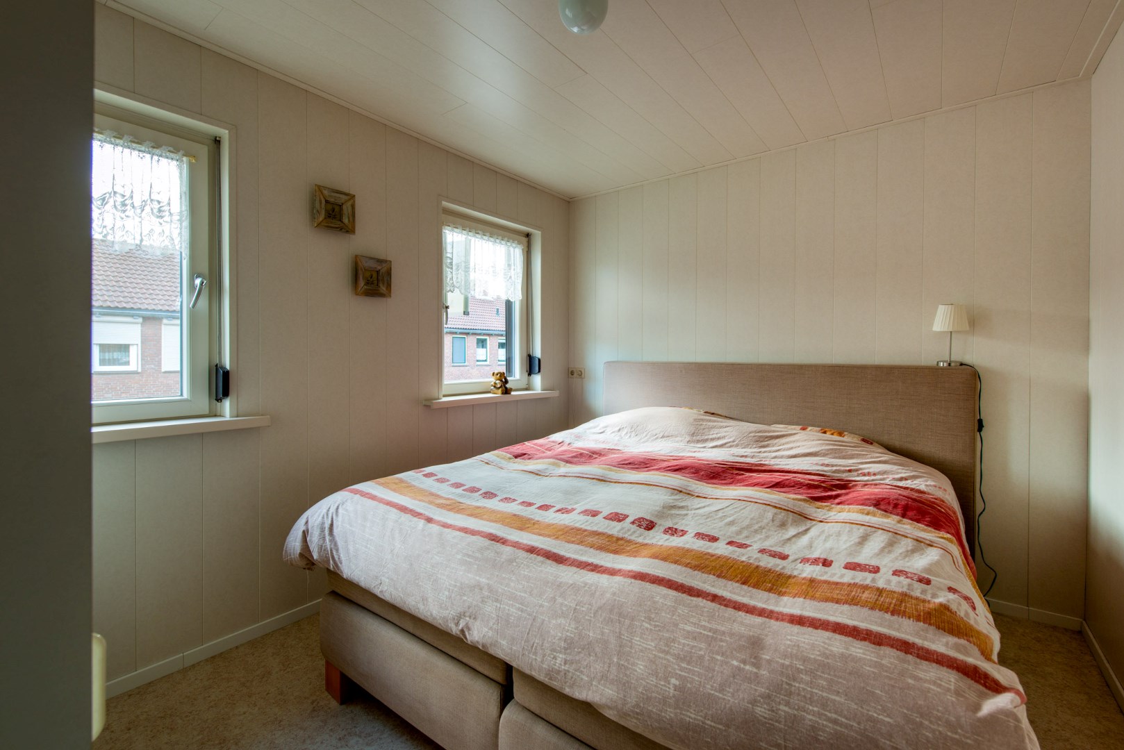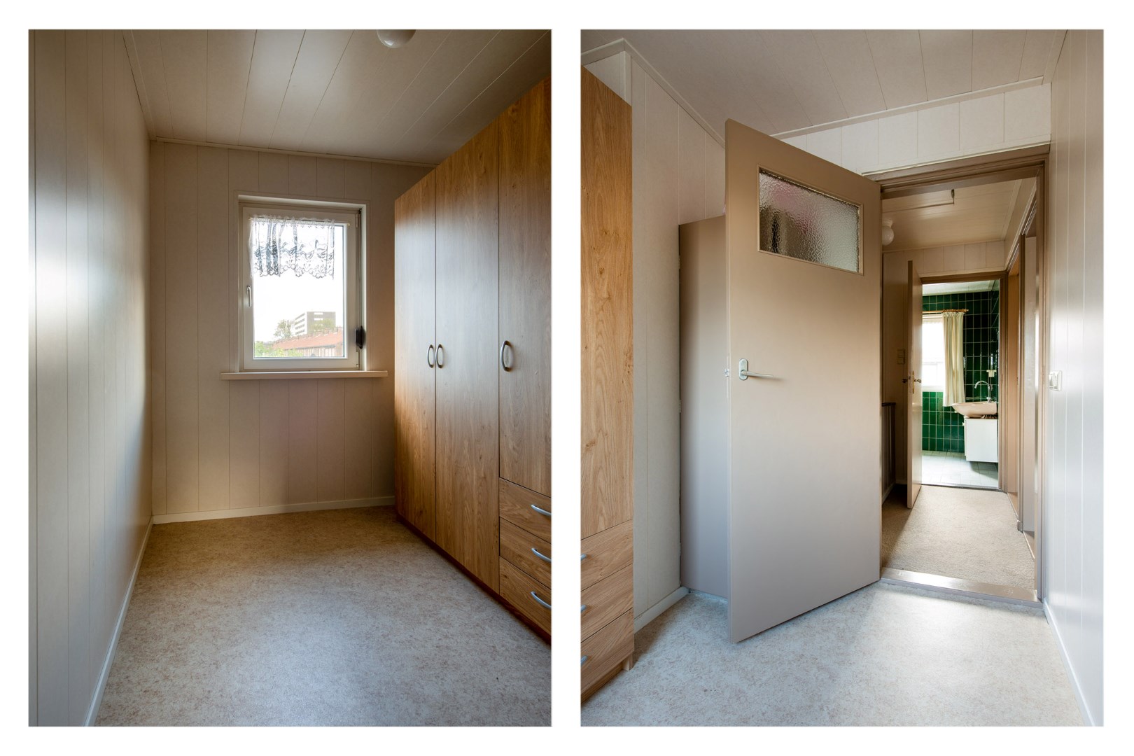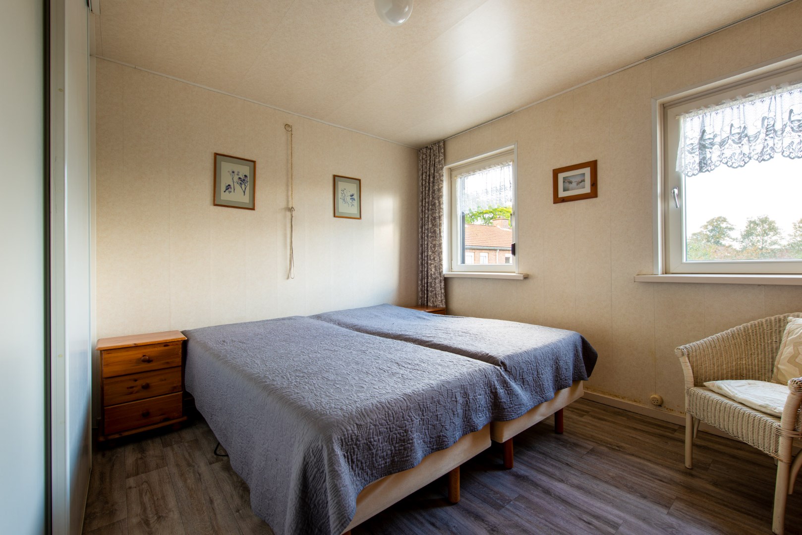 Deze kleinere slaapkamer is voorzien van mdf bekleding en er ligt zeil op de vloer.