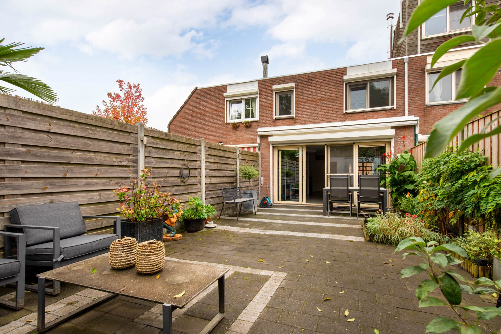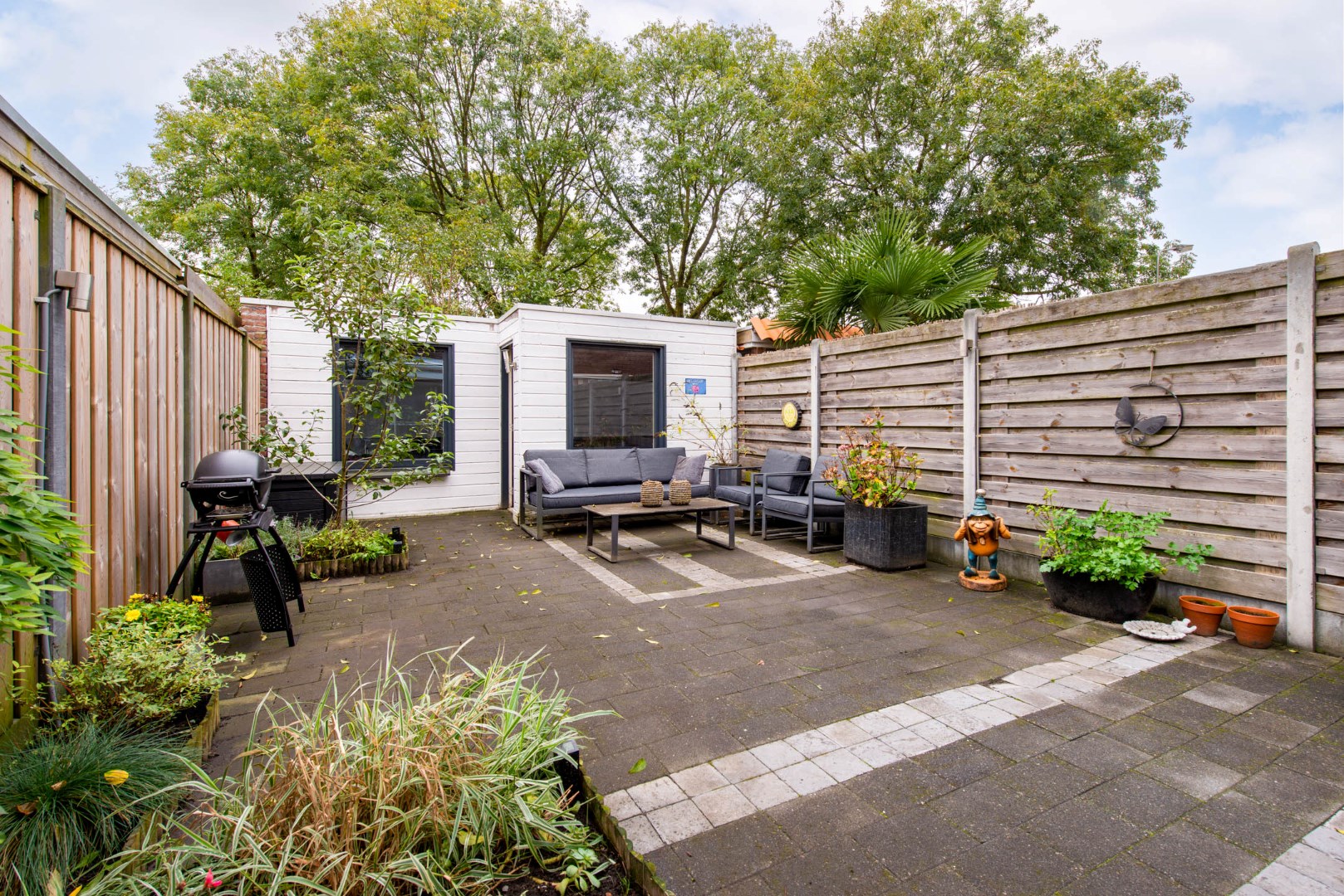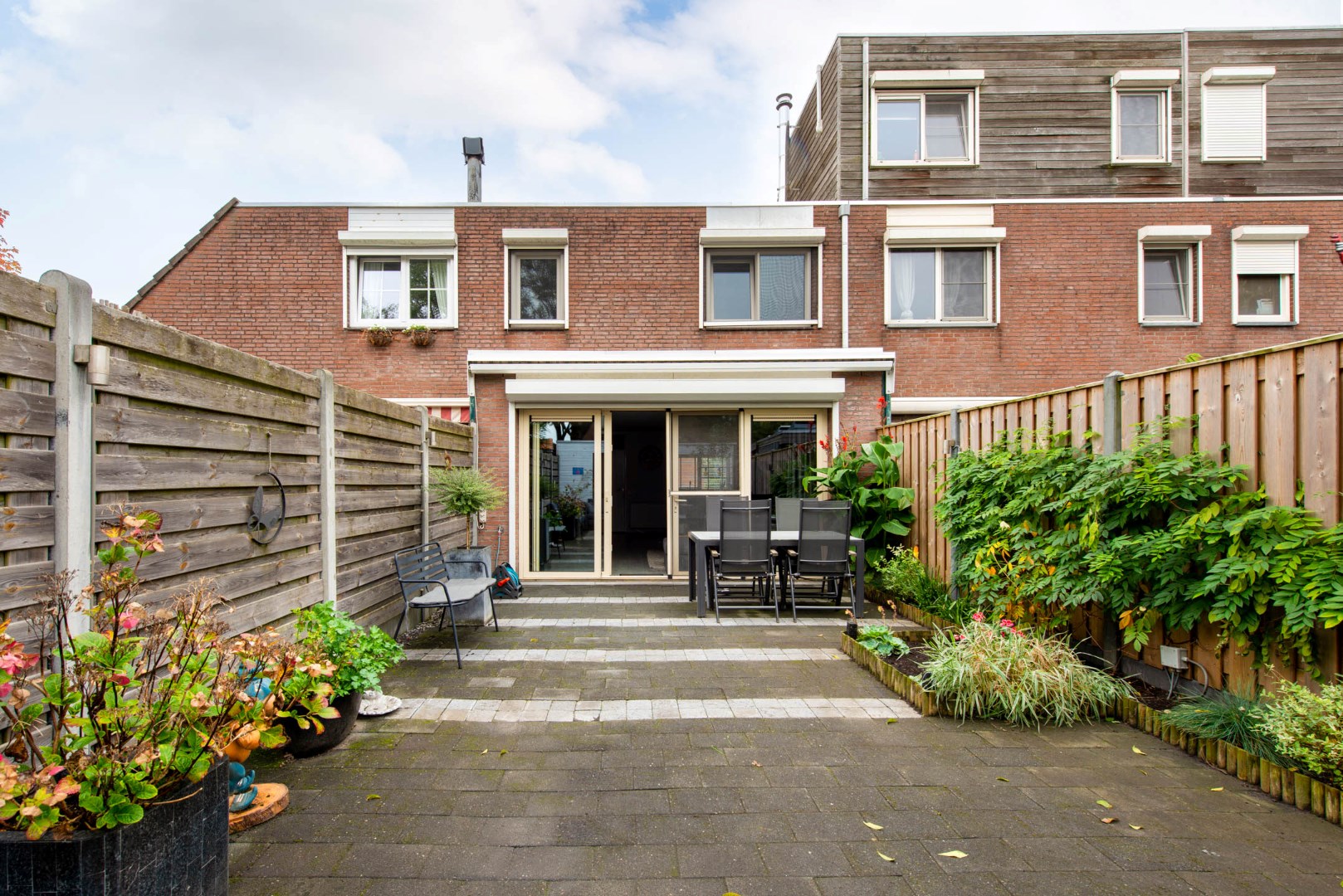 De haast geheel bestrate zonnige achtertuin is op het zuidwesten gelegen en biedt volop privacy. Deze tuin is geheel voorzien van sierbestrating. Hierdoor heeft u altijd een zon en schaduwplekje. Achter in de tuin is een zeer royale berging voor de fietsen e.d. Via de achterzijde kunt u de tuin verlaten.