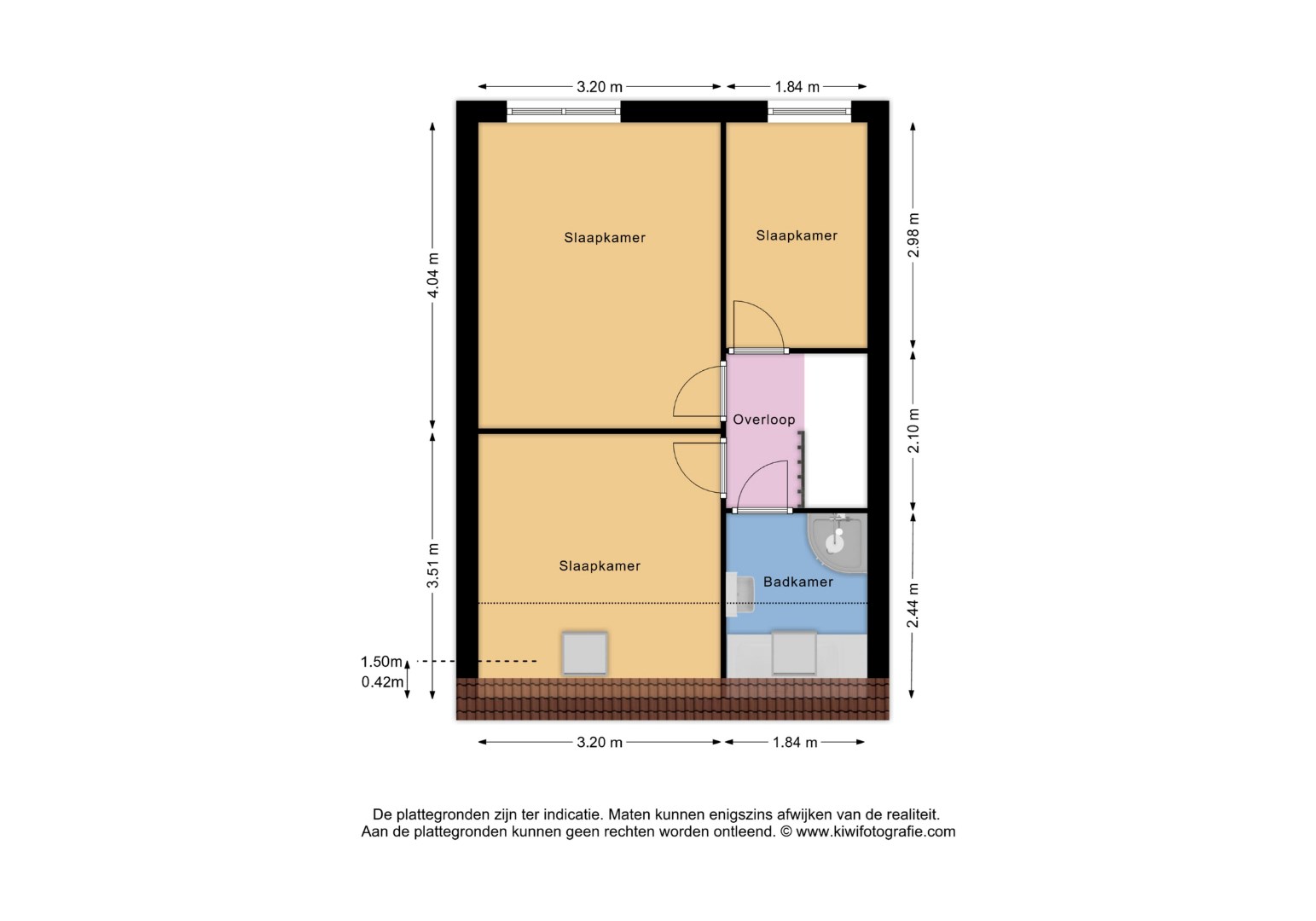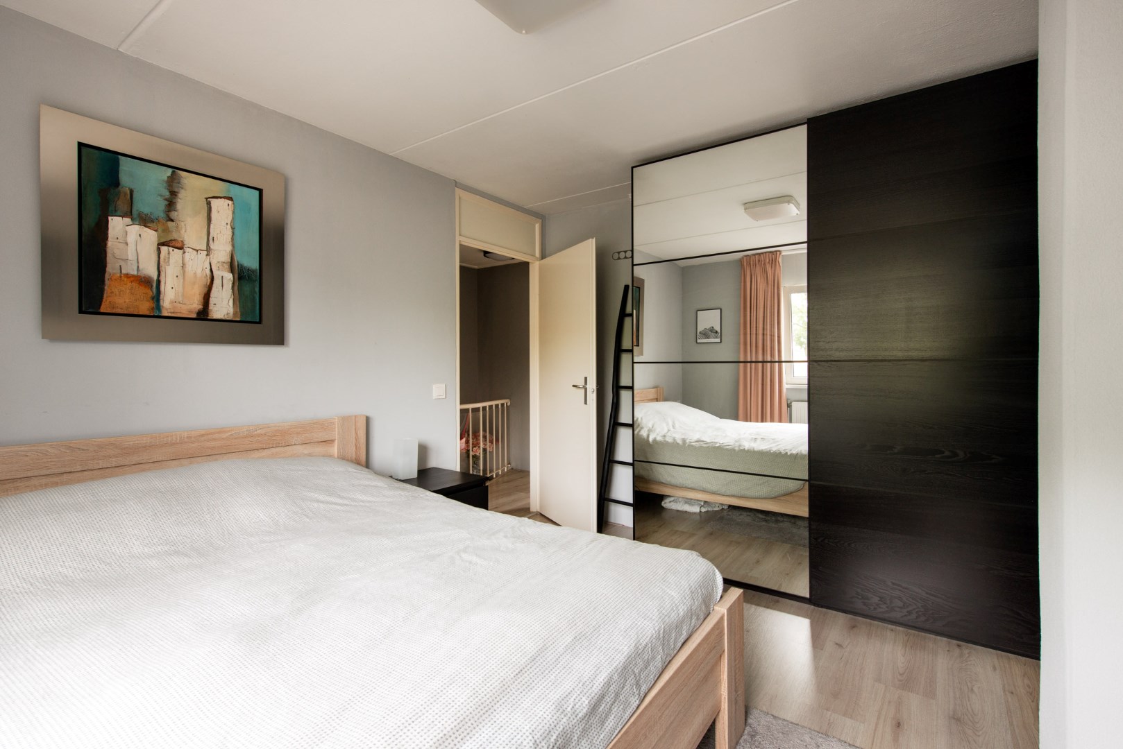 Op de 1e verdieping bevinden zich 2 royale slaapkamers en een kleinere slaapkamer. Alle slaapkamers zijn voorzien van een laminaatvloer. De grootste van de slaapkamers is aan de achterzijde gelegen. .
