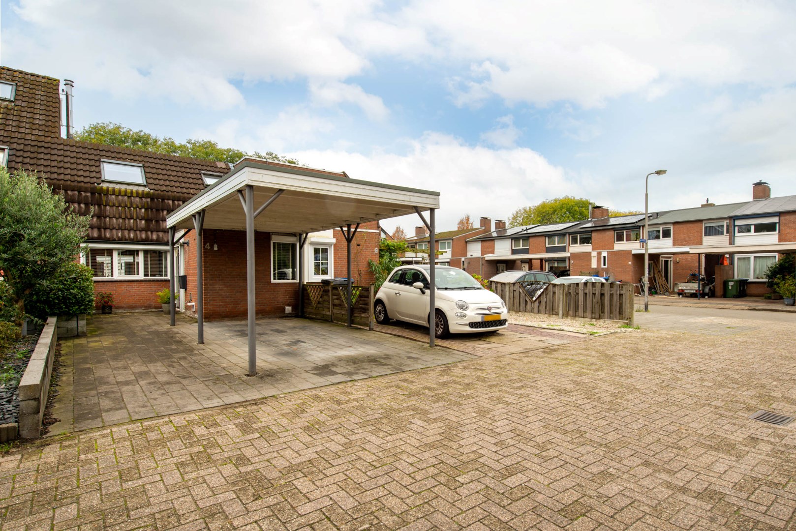 Aan de voorzijde van deze rustig gelegen woning is de carport. Zo kunt altijd voor de deur parkeren. Een parkje en kinderboerderij liggen in de buurt. Ook alle voorzieningen zoals scholen en winkels zijn op loopafstand.