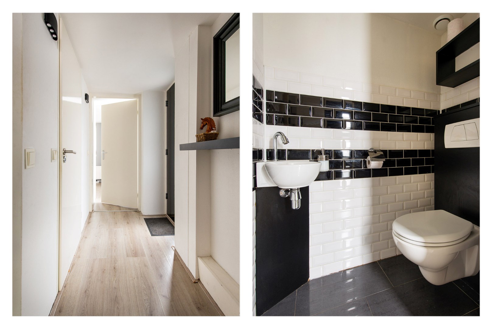 Hal/entree met toiletruimte. De toiletruimte is voorzien van een toilet en wasbakje.